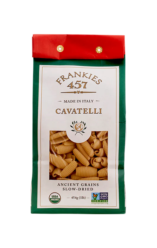 Beloved across Southern Italy, Frankie’s Artisanal Cavatelli are celebrated for their soft yet satisfying bite. These little ridged pasta shells are perfect for soaking up hearty marinara with meatballs or pairing with sautéed broccoli and garlic.