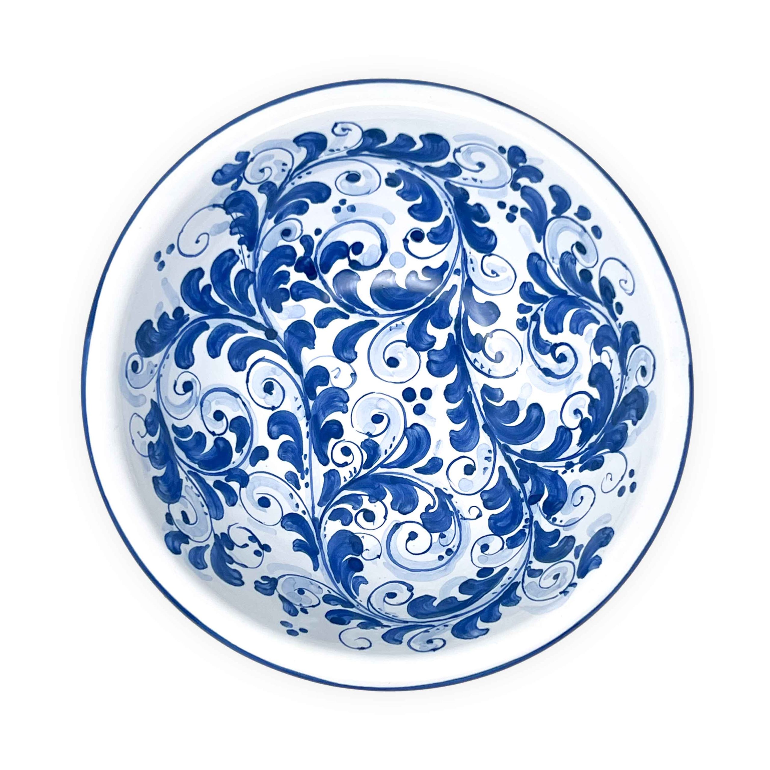 Bring a touch of Mediterranean charm to your table with this exquisite hand-painted ceramic bowl from Selinunte, a town renowned for its rich artistic heritage. Signed Best Sicily, this bowl showcases intricate blue maiolica patterns, meticulously painted by skilled artisans.
