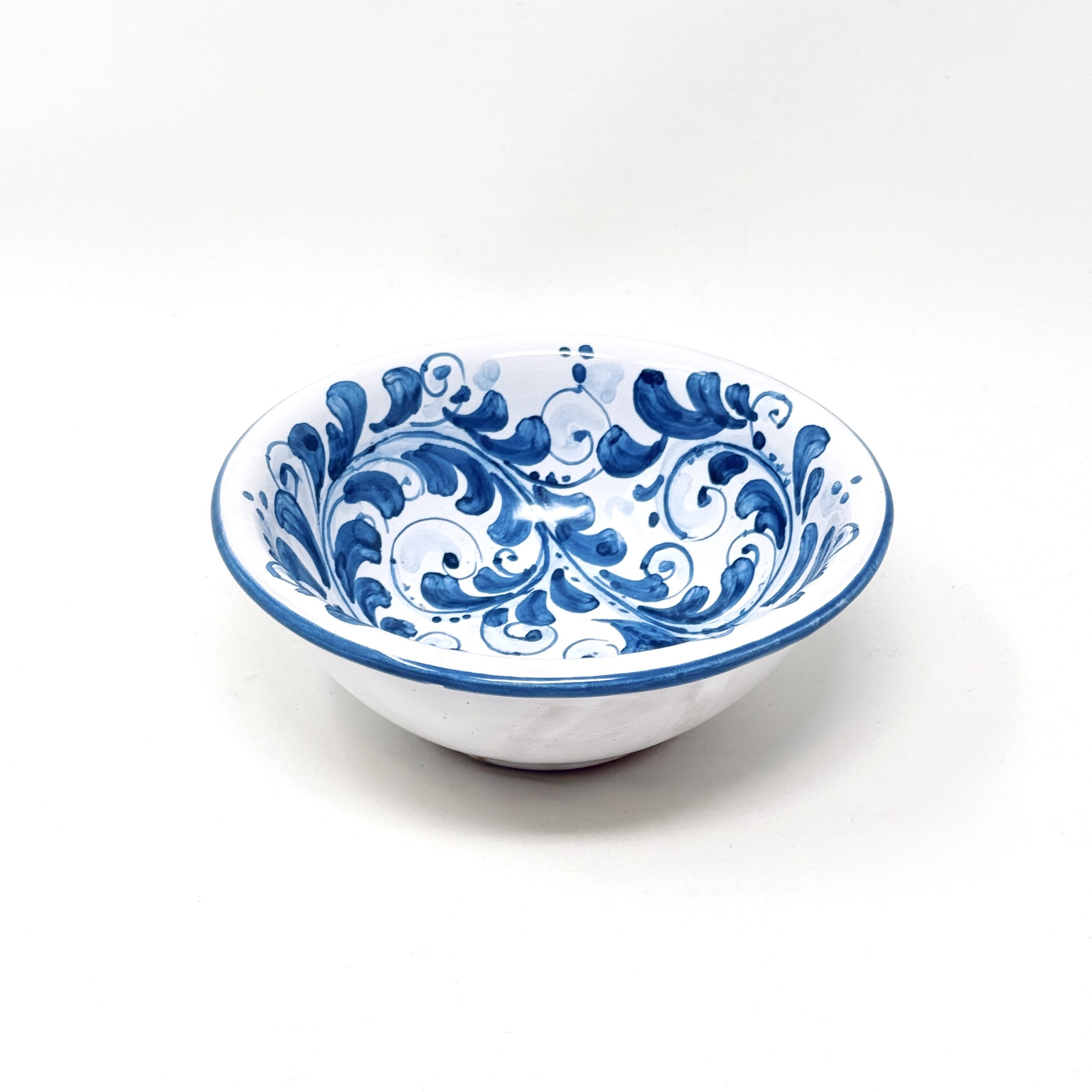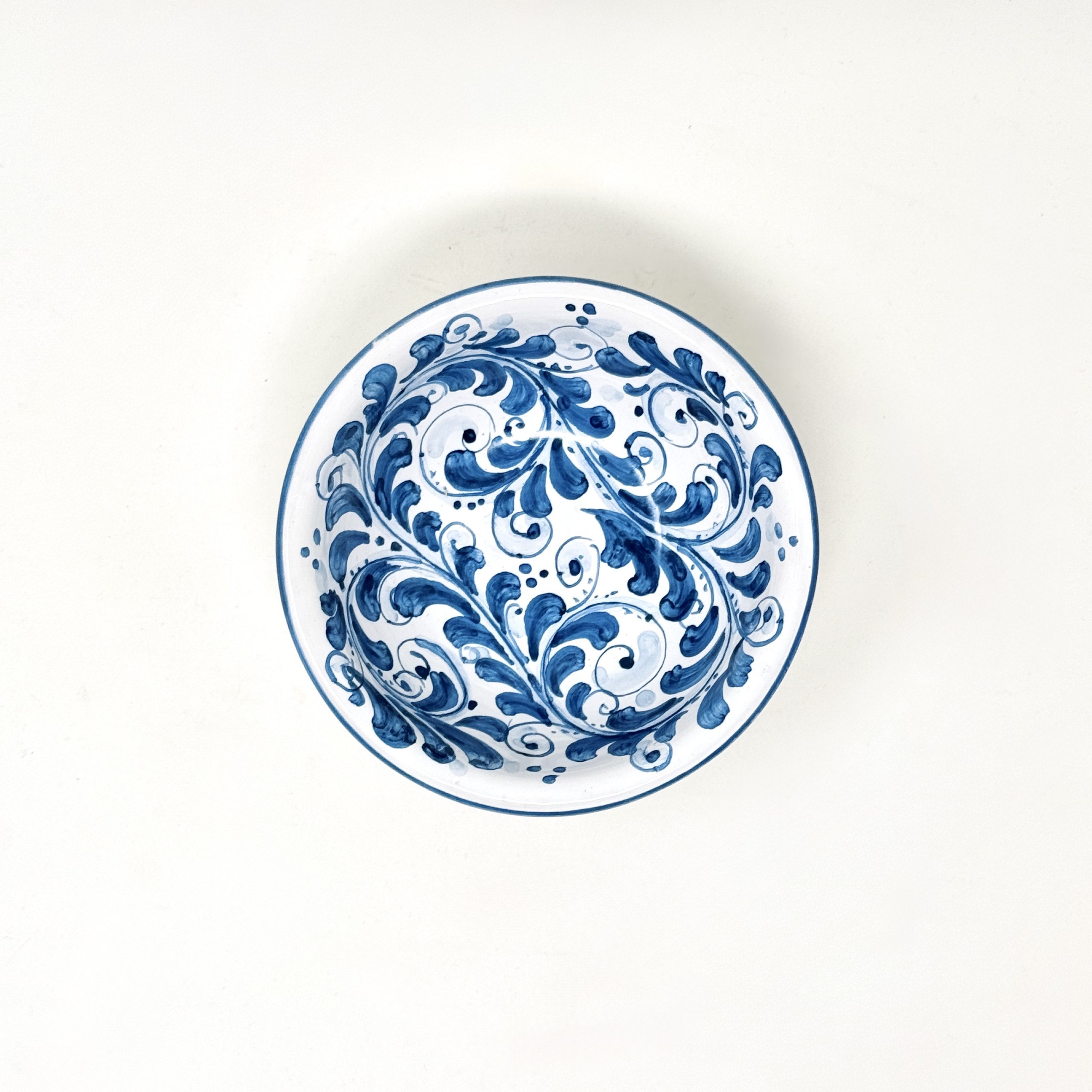 Bring a touch of Mediterranean charm to your table with this exquisite hand-painted ceramic bowl from Selinunte, a town renowned for its rich artistic heritage. Signed Best Sicily, this bowl showcases intricate blue maiolica patterns, meticulously painted by skilled artisans.