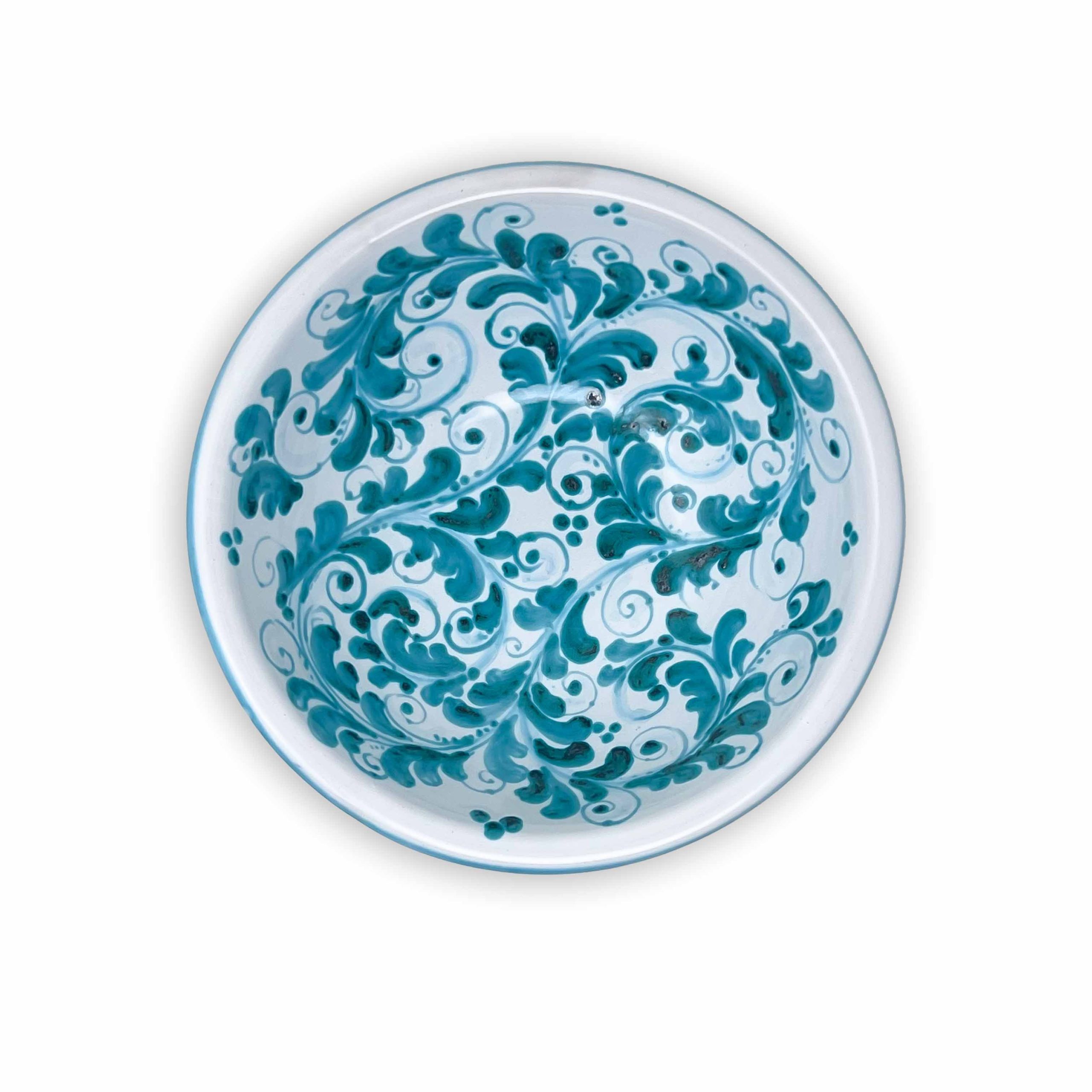 Bring a touch of Mediterranean charm to your table with this exquisite hand-painted ceramic bowl from Selinunte, a town renowned for its rich artistic heritage. Signed Best Sicily, this bowl showcases intricate green maiolica patterns, meticulously painted by skilled artisans.