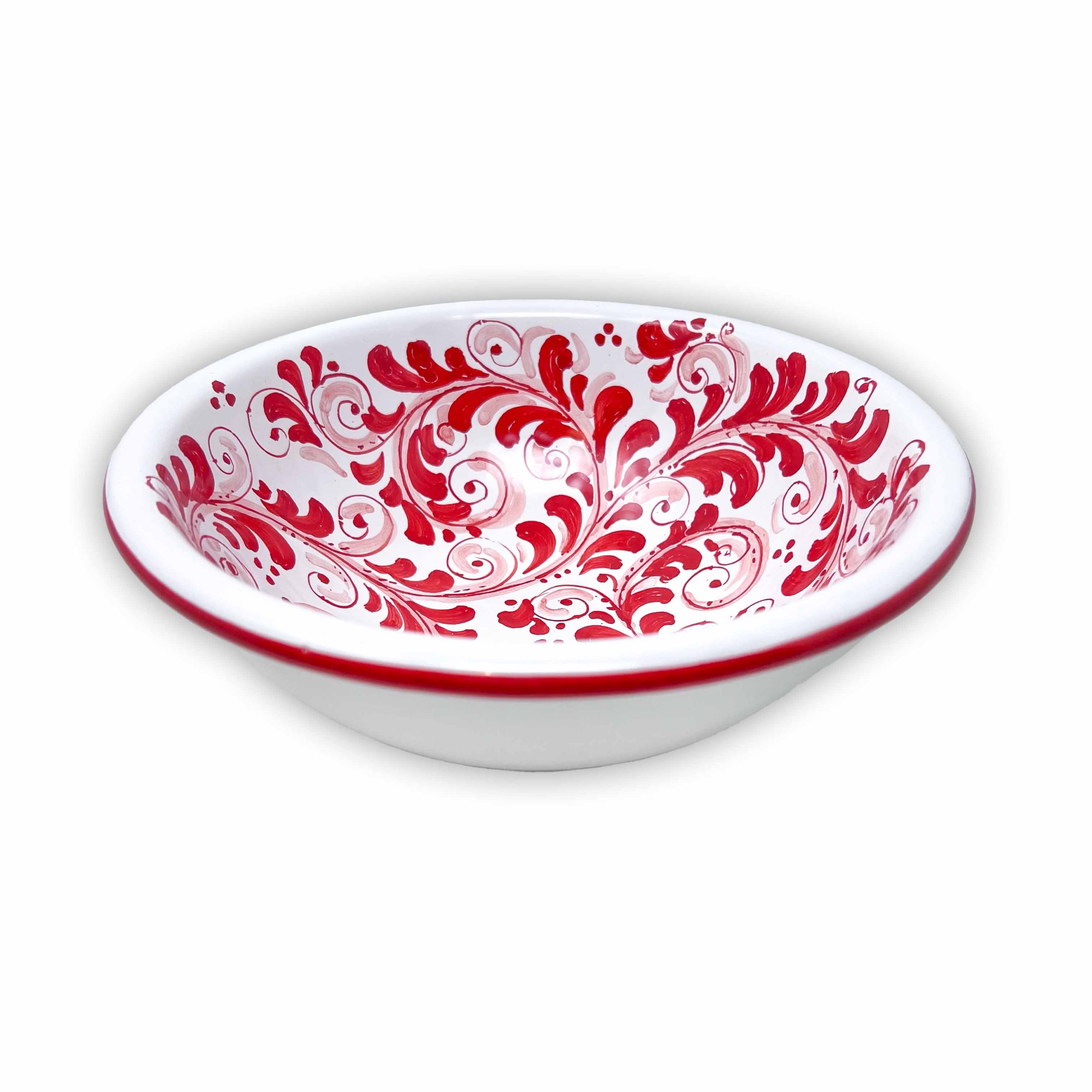 Bring a touch of Mediterranean charm to your table with this exquisite hand-painted ceramic bowl from Selinunte, a town renowned for its rich artistic heritage. Signed Best Sicily, this bowl showcases intricate red maiolica patterns, meticulously painted by skilled artisans.