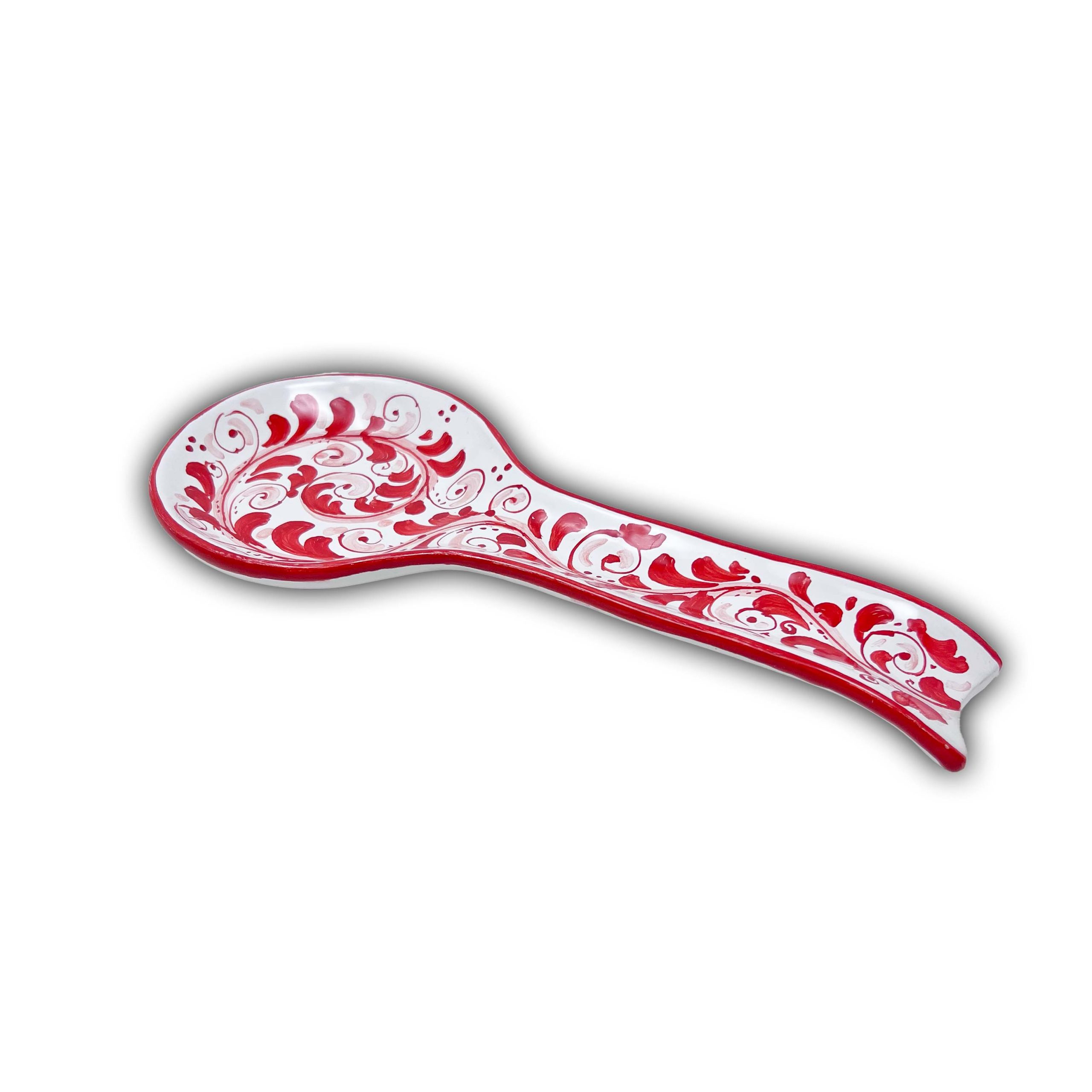 Hand-Painted Ceramic Spoon Rest – Red Maiolica