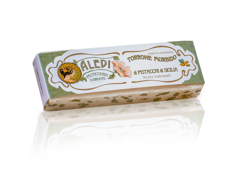 Let yourself be tempted by the extraordinary softness and unique taste of Aledi Sicilian Pistachios soft nougat!
