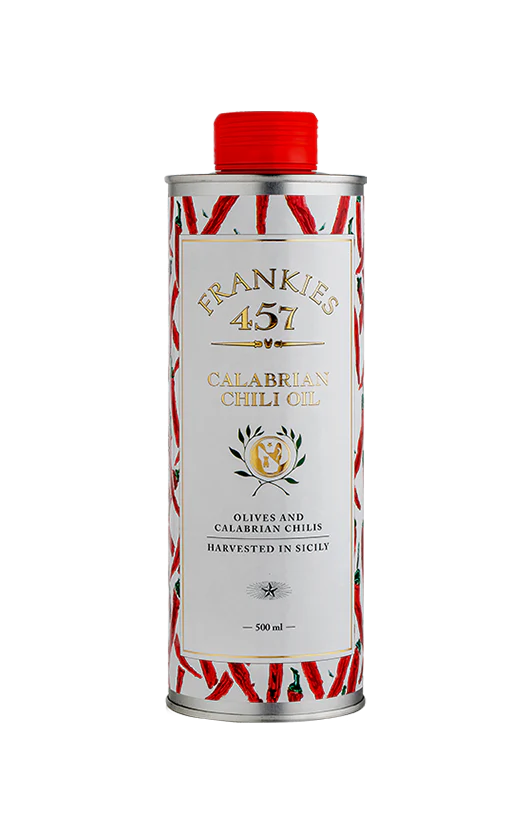 Elevate your dishes with Frankie’s Calabrian Chili Oil, a perfectly balanced blend of Peperoncini Lunghi, Diavolicchio Calabrese, Peperoncini Tondi dell’Etna, and our premium Extra Virgin Olive Oil.