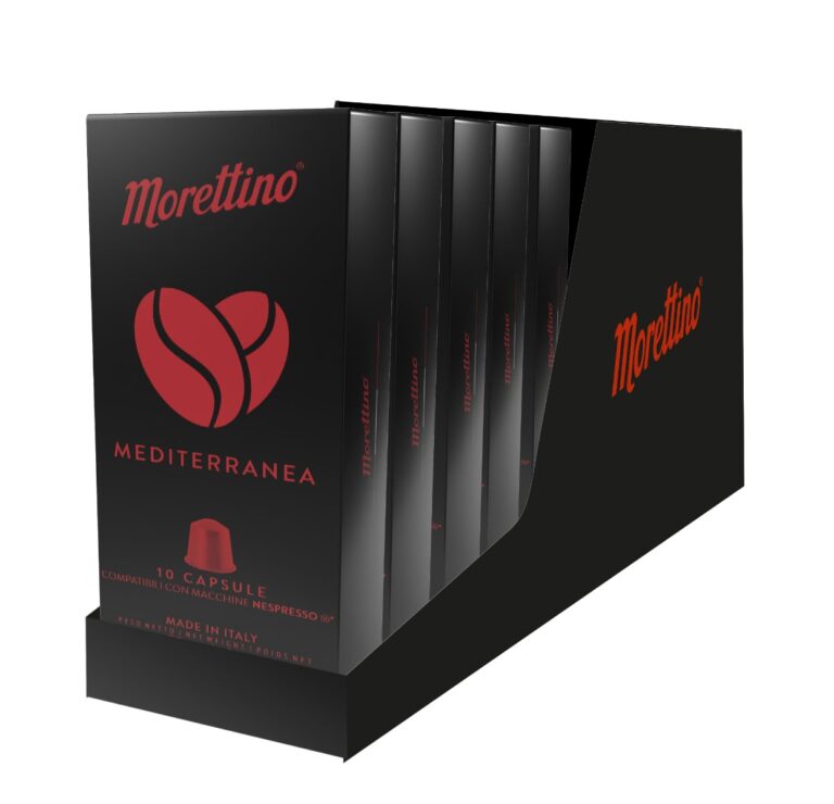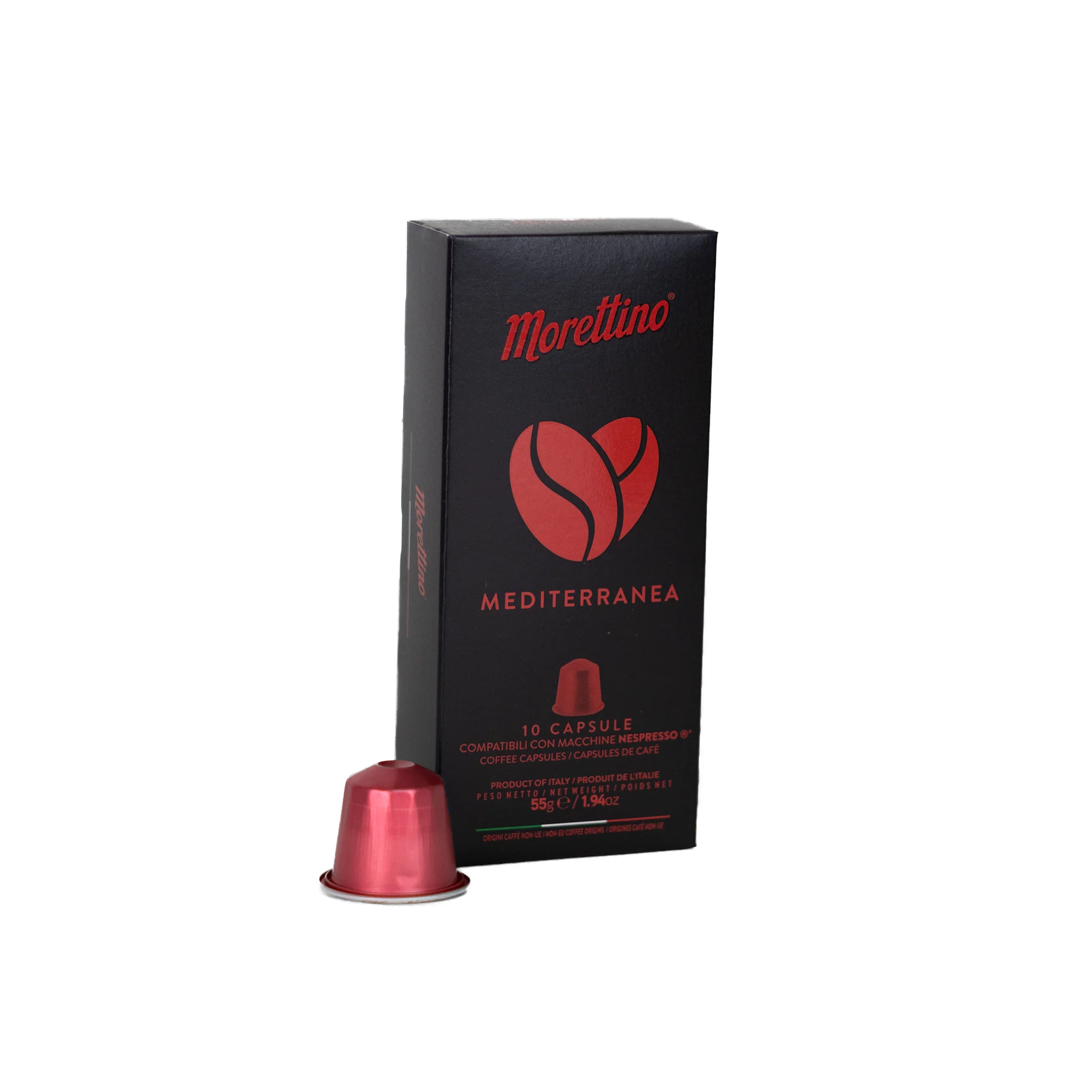 Savor the essence of the Mediterranean with Morettino Mediterranea espresso coffee capsules. This exclusive, artisanal blend is slow-roasted to perfection, combining lively fruity notes from premium Central and South American Arabicas with a rich dark chocolate accent from high-quality Asian Robustas.