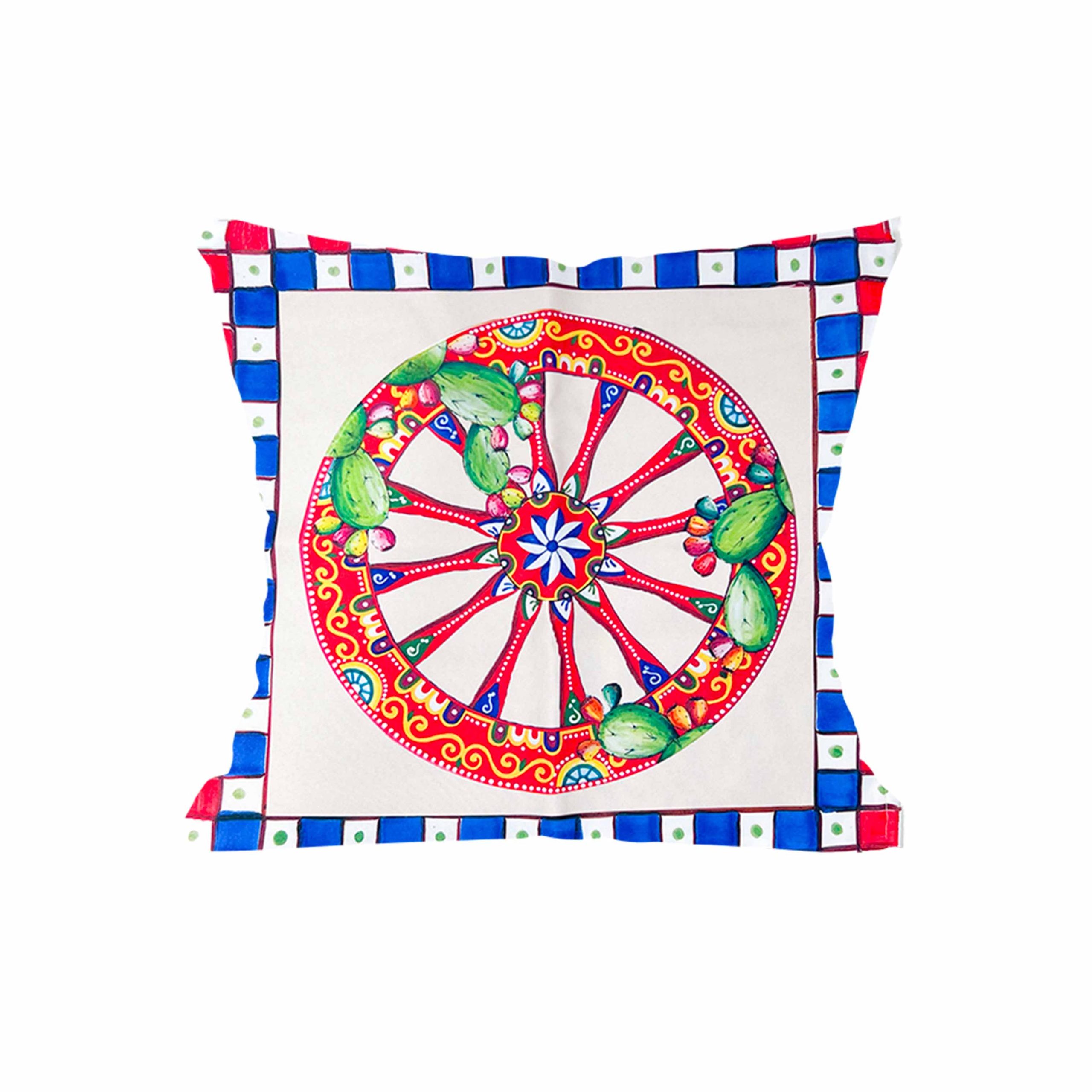 Bring a touch of Sicily into your home with this decorative pillow cover, featuring the iconic Sicilian cart wheel. Inspired by traditional Mediterranean craftsmanship, the vibrant design highlights the intricacy of the cart’s wheel, symbolizing the rich cultural heritage of the island.